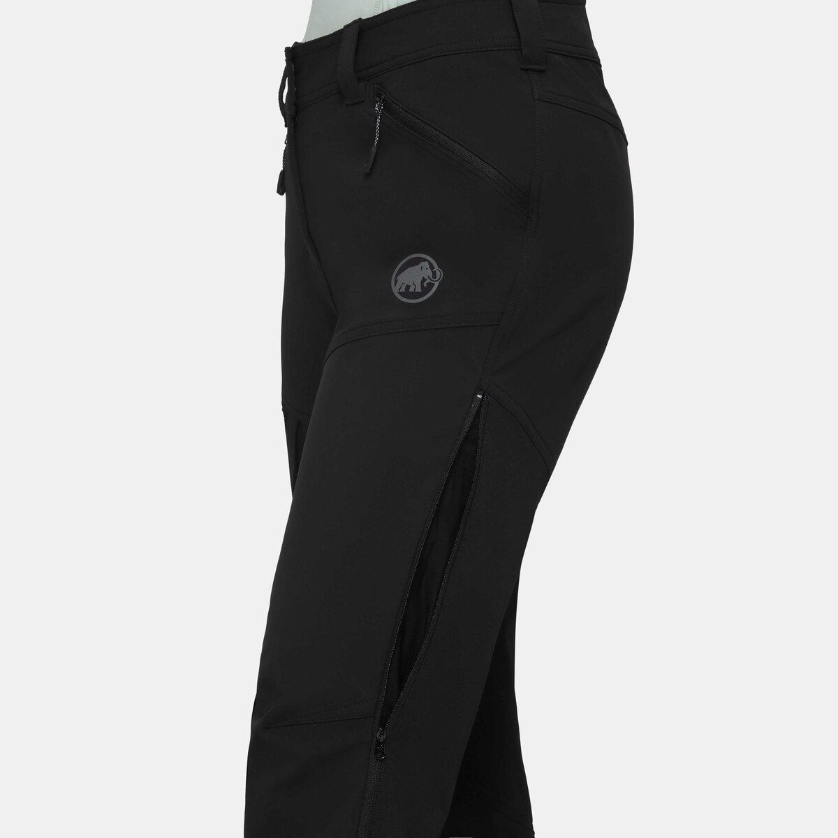 - Regulowany dół nogawki z zamkiem błyskawicznym, klinem i zapięciem na rzep